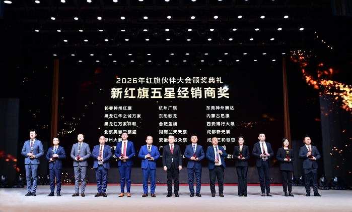 劉亦功在致辭中表示,2026年紅旗品牌將持續(xù)深化廠商協(xié)同,全力為紅旗伙伴賦能增效,聚力突破55萬(wàn)輛。希望紅旗伙伴激昂斗志,與紅旗品牌同心同向、攜手共進(jìn);希望全體營(yíng)銷將士鉚足干勁、接續(xù)奮斗,與紅旗伙伴并肩戰(zhàn)斗,以勇立潮頭、永爭(zhēng)第一的精神風(fēng)貌打贏2026營(yíng)銷攻堅(jiān)戰(zhàn)。