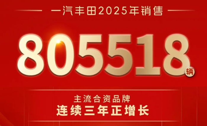 來源:新華社在汽車產(chǎn)業(yè)進入深度調(diào)整期、新能源與智能化浪潮奔涌向前的背景下,2025年一汽豐田展現(xiàn)出極強的戰(zhàn)略定力與進化能力,全年新車銷量達805518輛,連續(xù)三年實現(xiàn)銷量正增長,品牌向上、向新的高質(zhì)量發(fā)展態(tài)勢愈發(fā)穩(wěn)健。