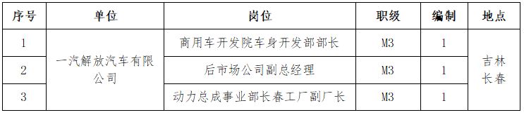 根據(jù)工作需要,現(xiàn)對一汽解放汽車有限公司部分高級經(jīng)理崗位面向社會(huì)公開招聘,具體內(nèi)容如下: