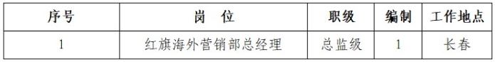 根據(jù)工作需要,現(xiàn)對中國第一汽車集團(tuán)進(jìn)出口有限公司紅旗海外營銷部總經(jīng)理崗位面向社會公開招聘,具體內(nèi)容如下: