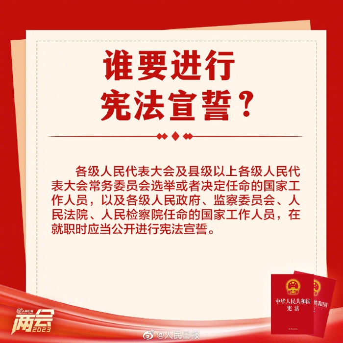 3月10日上午,十四屆全國人大一次會議舉行憲法宣誓儀式。為什么要進(jìn)行憲法宣誓?宣誓儀式怎樣進(jìn)行?對宣誓場所有何規(guī)定?關(guān)于憲法宣誓的9個知識點,了解一下。