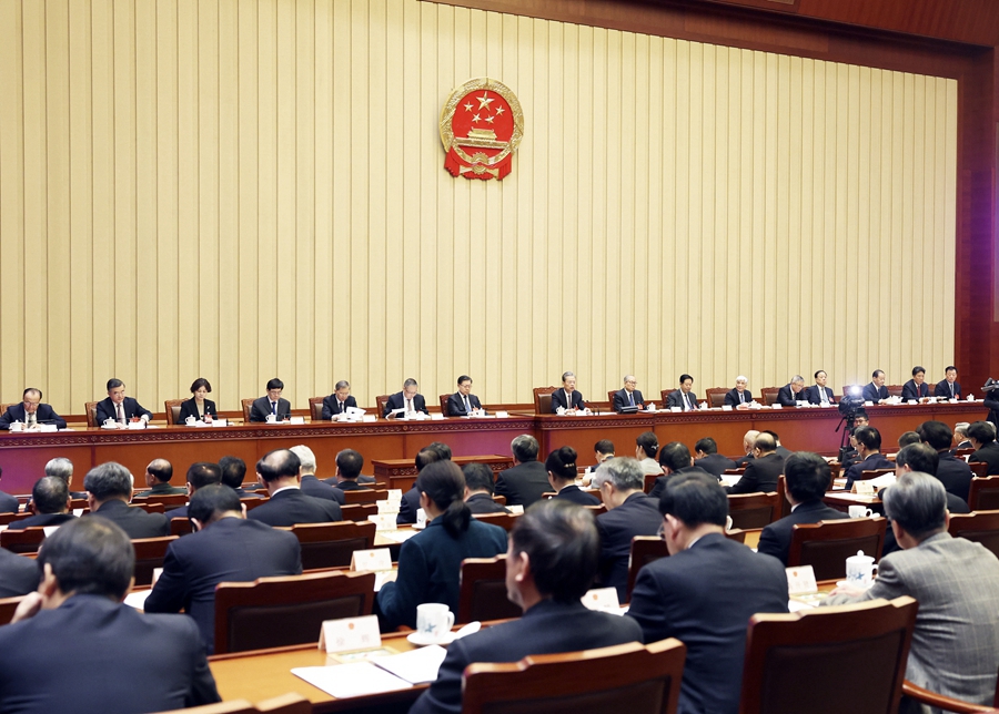 主席團(tuán)常務(wù)主席趙樂(lè)際主持會(huì)議。