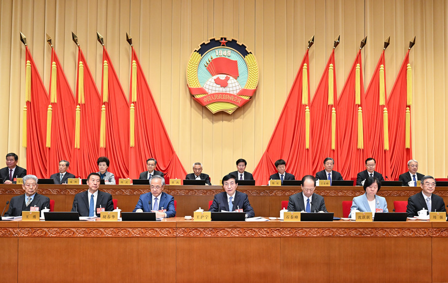 3月9日下午,政協(xié)第十四屆全國委員會(huì)常務(wù)委員會(huì)第十一次會(huì)議在北京舉行。中共中央政治局常委、全國政協(xié)主席王滬寧主持會(huì)議。新華社記者 岳月偉 攝