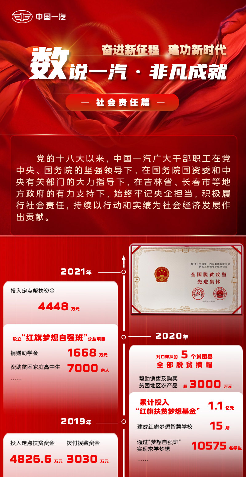 2020年7月23日,習近平總書記視察中國一汽,贊譽有加,矚望殷切,為中國一汽提升關(guān)鍵核心技術(shù)創(chuàng)新能力、做強民族汽車品牌、建設(shè)世界一流汽車企業(yè)指明了方向,提供了強大思想武器和行動指南。兩年來,中國一汽廣大干部職工牢記總書記殷殷囑托,勠力同心、團結(jié)奮斗,奮發(fā)有為、奮勇爭先,以行動與實績呈交了一份完美的答卷!
