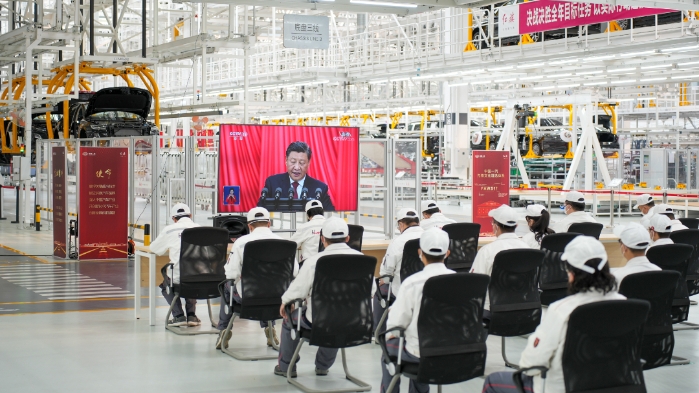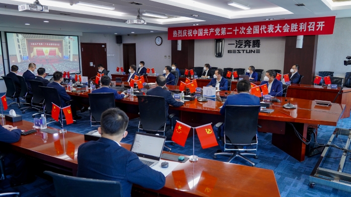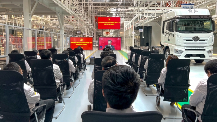 中國一汽在長春及北京、天津、青島、成都、佛山等外埠基地所在13座城市設(shè)立500個會場,近萬名黨員干部參與集中收聽收看,其他干部職工通過多種形式開展收聽收看,總計覆蓋人數(shù)超4萬人。