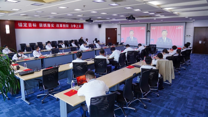 在中國一汽總部會場,中國一汽黨委領(lǐng)導(dǎo)班子成員,總經(jīng)理助理,總部職能部、研發(fā)總院負責人等集中收看。大家聚精會神聆聽,專心致志記錄。